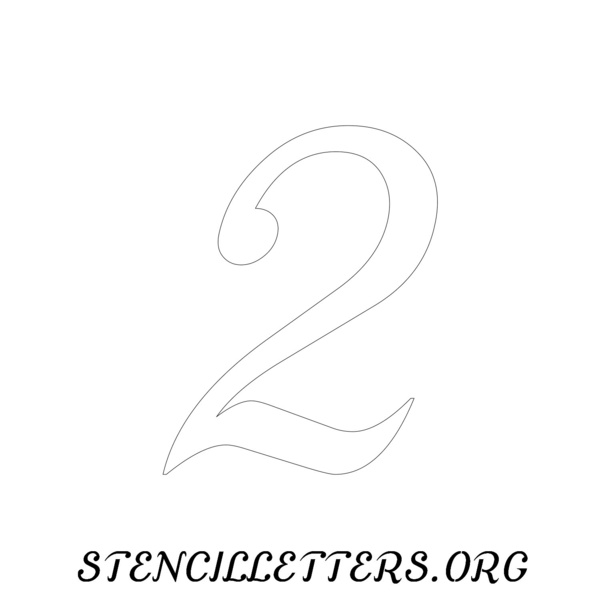 Printable Individual 0-9 Number stencils design 144 Cursive in 2 inch numbers high-resolution templates size.