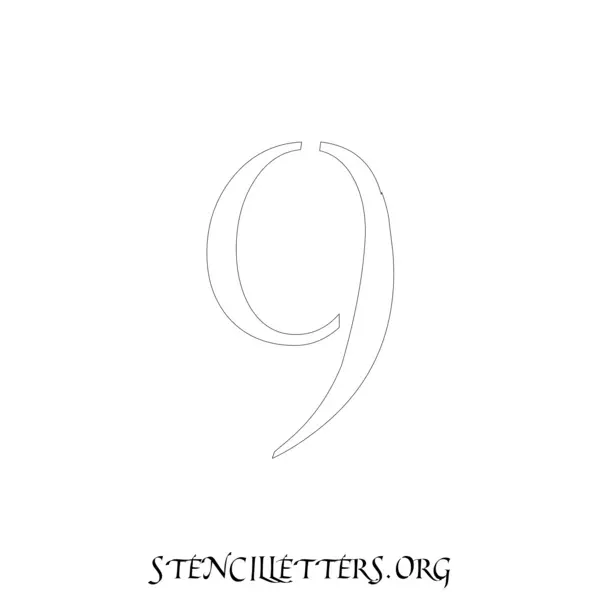 Printable Individual 0-9 Number stencils design 149 Cursive in 2 inch numbers high-resolution templates size.