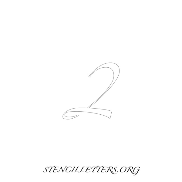 Printable Individual 0-9 Number stencils design 271 Cursive in 2 inch numbers high-resolution templates size.