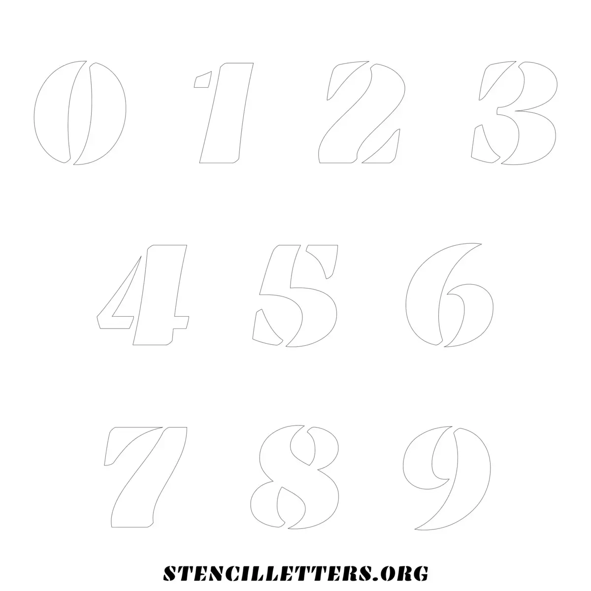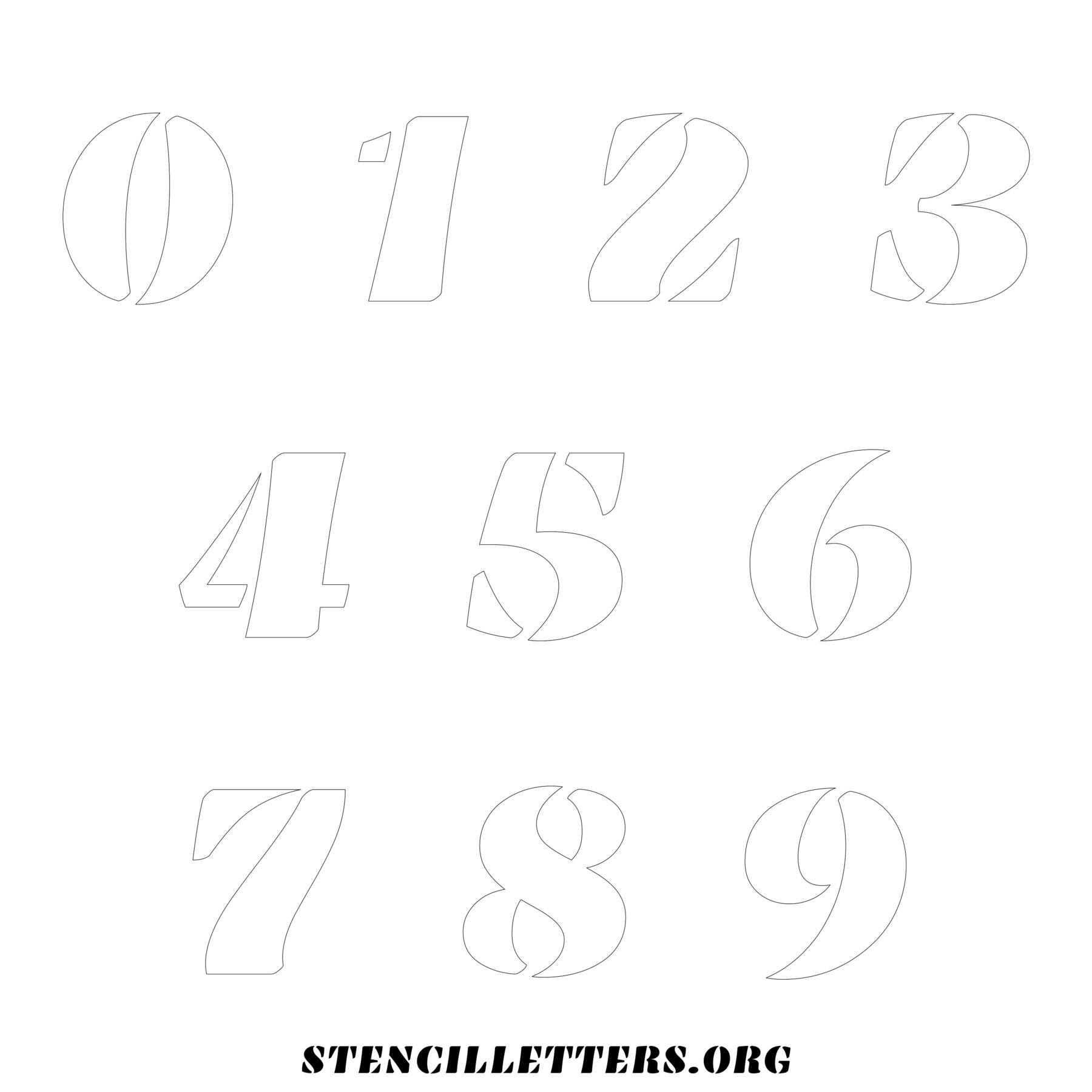 Stencil Design 269 Bold. Print these free numbers stencils and make your own DIY templates for your stenciling projects. Available in high resolution printable sizes: 4 Inch, 5 Inch, 6 Inch, 7 Inch, 8 Inch, 9 Inch and 10 Inch.