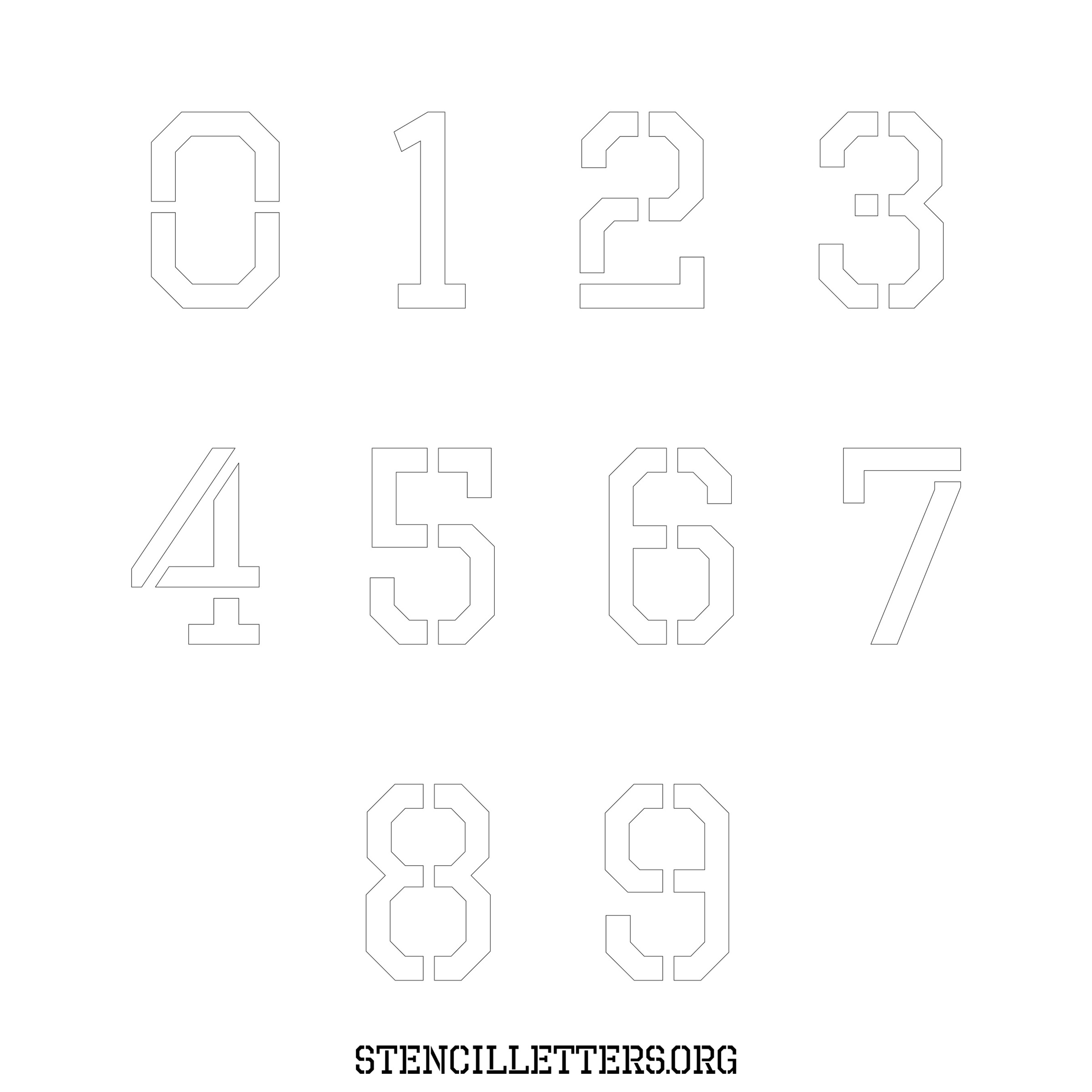 Stencil Design 280 Military. Print these free numbers stencils and make your own DIY templates for your stenciling projects. Available in high resolution printable sizes: 4 Inch, 5 Inch, 6 Inch, 7 Inch, 8 Inch, 9 Inch and 10 Inch.