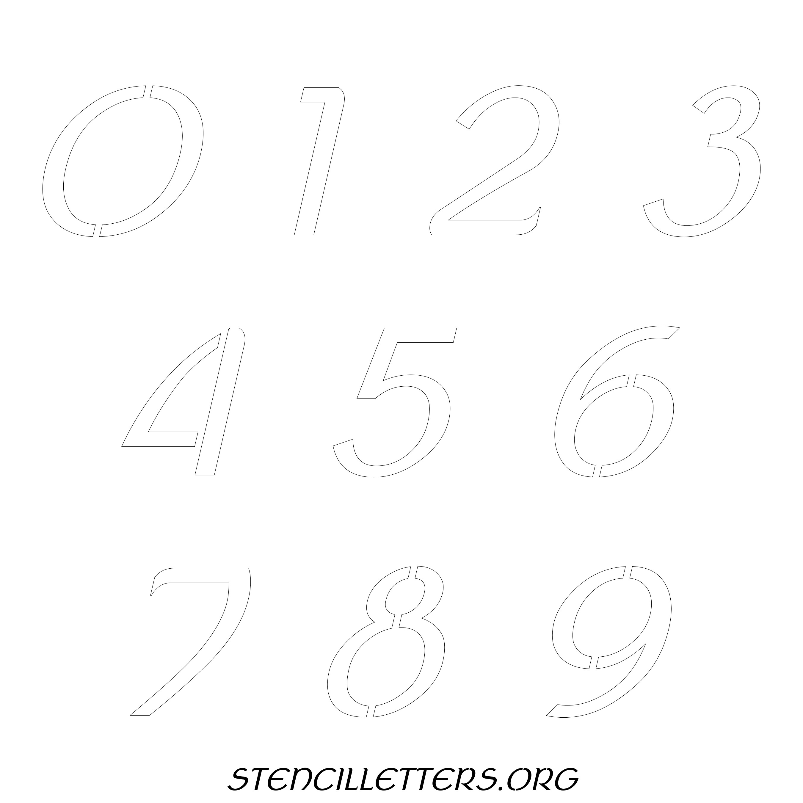 Stencil Design 40 Italic. Print these free numbers stencils and make your own DIY templates for your stenciling projects. Available in high resolution printable sizes: 4 Inch, 5 Inch, 6 Inch, 7 Inch, 8 Inch, 9 Inch and 10 Inch.
