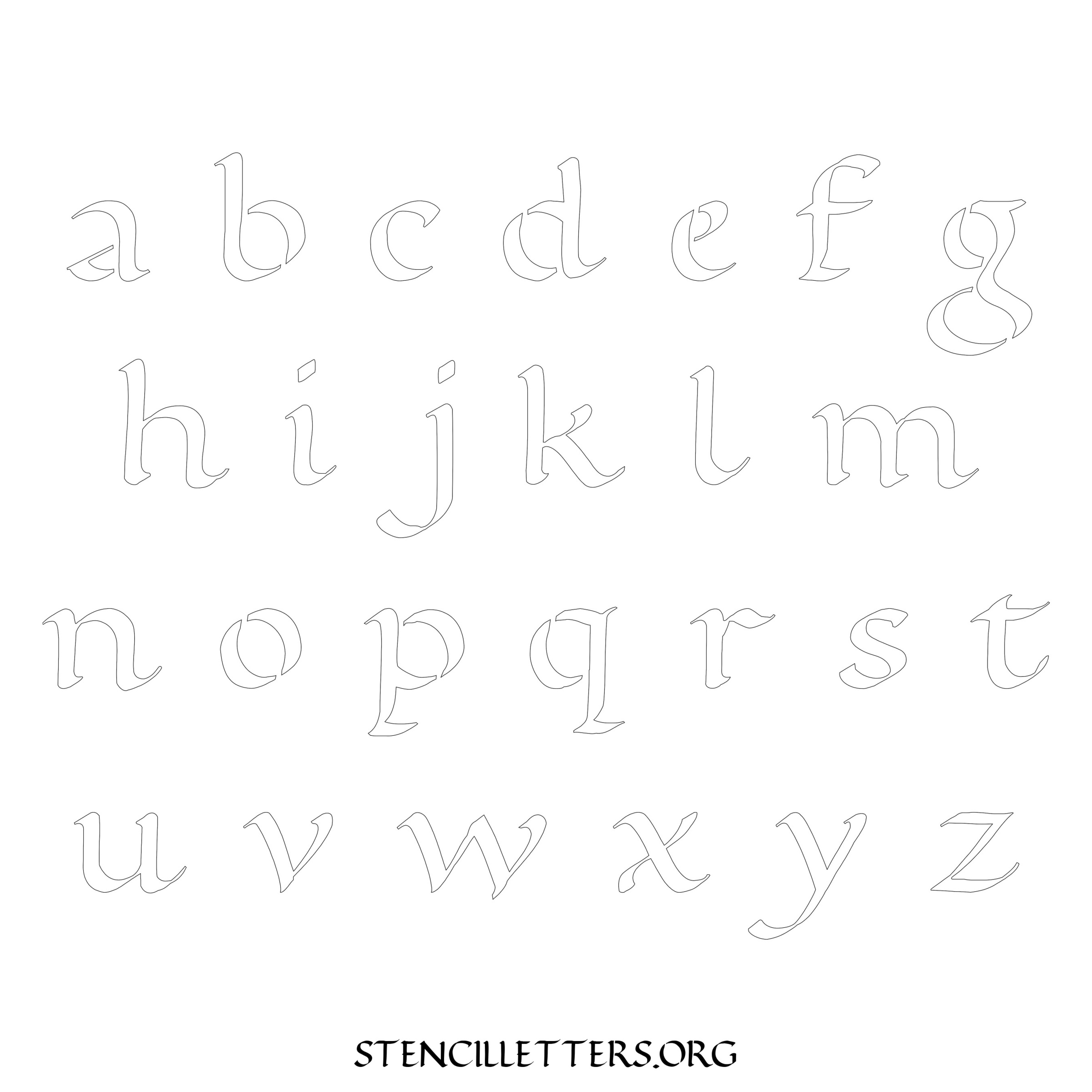 Stencil Design 174 Calligraphy. Print these free lowercase letter stencils and make your own DIY templates for your stenciling projects. Available in high resolution printable sizes: 4 Inch, 5 Inch, 6 Inch, 7 Inch, 8 Inch, 9 Inch and 10 Inch.