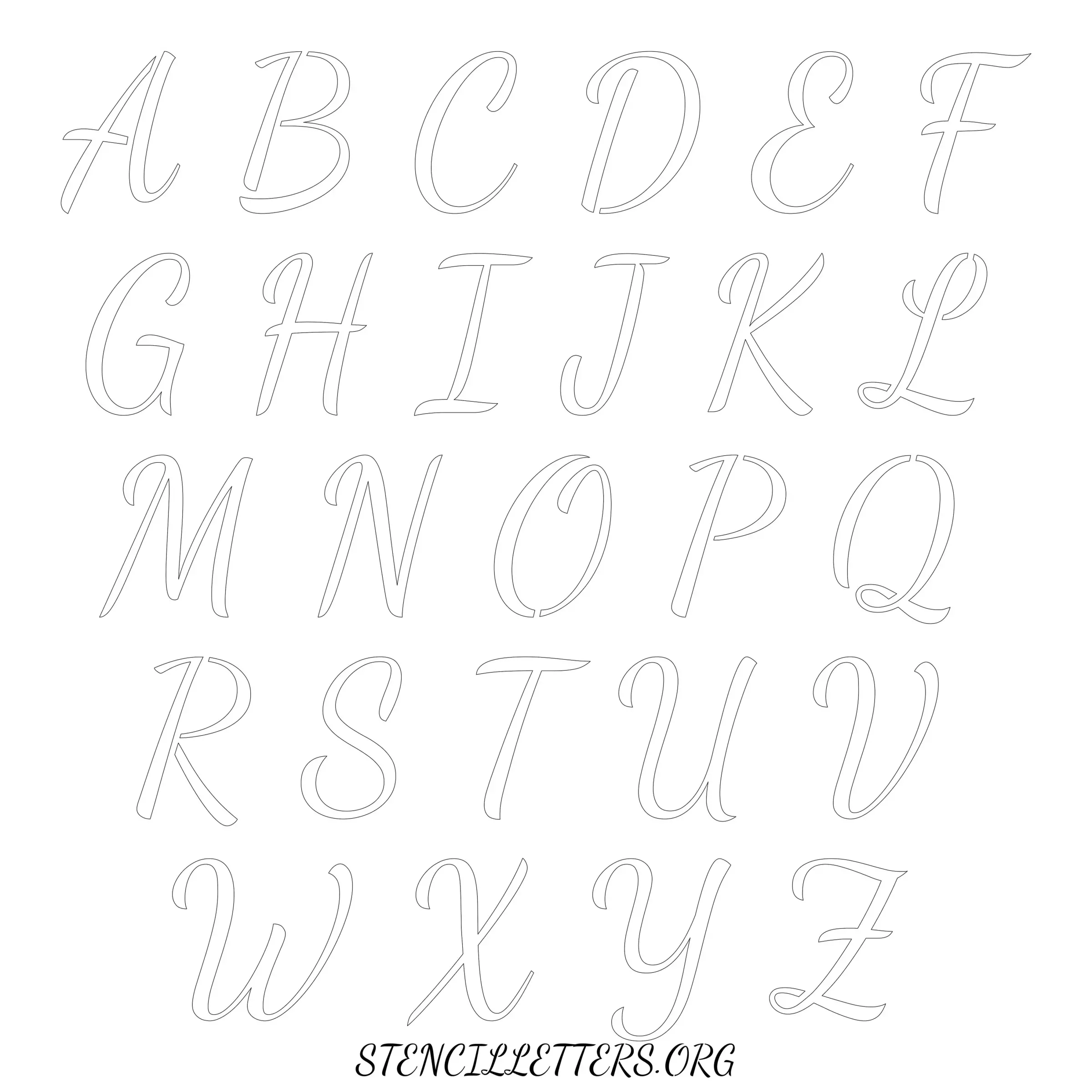 Stencil Design 133 Cursive. Print these free uppercase letter stencils and make your own DIY templates for your stenciling projects. Available in high resolution printable sizes: 4 Inch, 5 Inch, 6 Inch, 7 Inch, 8 Inch, 9 Inch and 10 Inch.