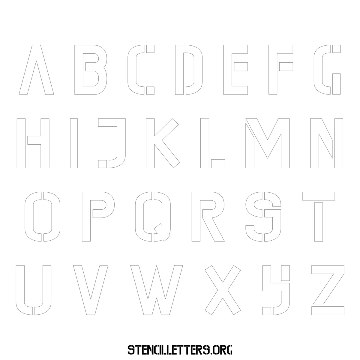 Stencil Design 225 Edgy. Print these free uppercase letter stencils and make your own DIY templates for your stenciling projects. Available in high resolution printable sizes: 4 Inch, 5 Inch, 6 Inch, 7 Inch, 8 Inch, 9 Inch and 10 Inch.