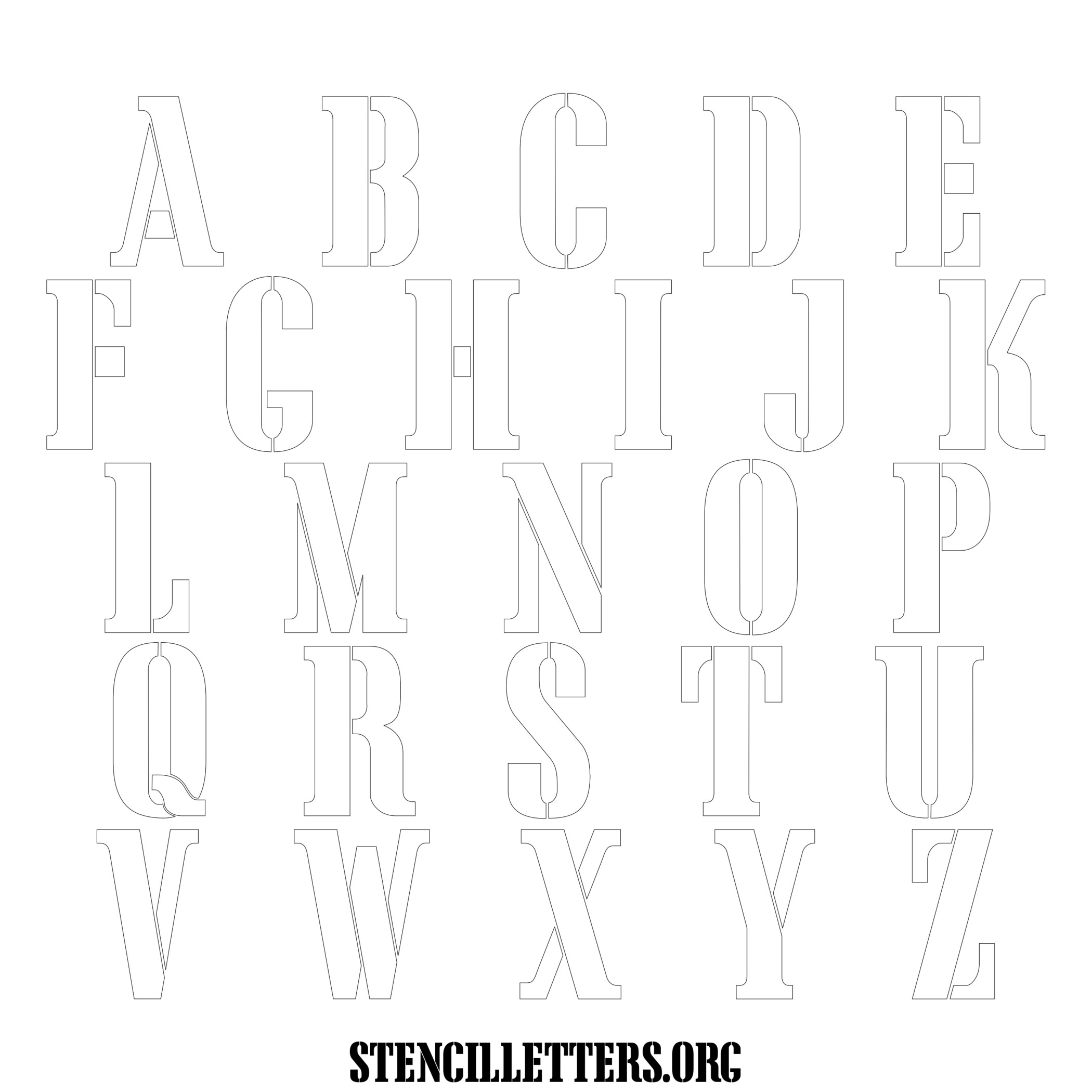 Stencil Design 243 Army. Print these free uppercase letter stencils and make your own DIY templates for your stenciling projects. Available in high resolution printable sizes: 4 Inch, 5 Inch, 6 Inch, 7 Inch, 8 Inch, 9 Inch and 10 Inch.