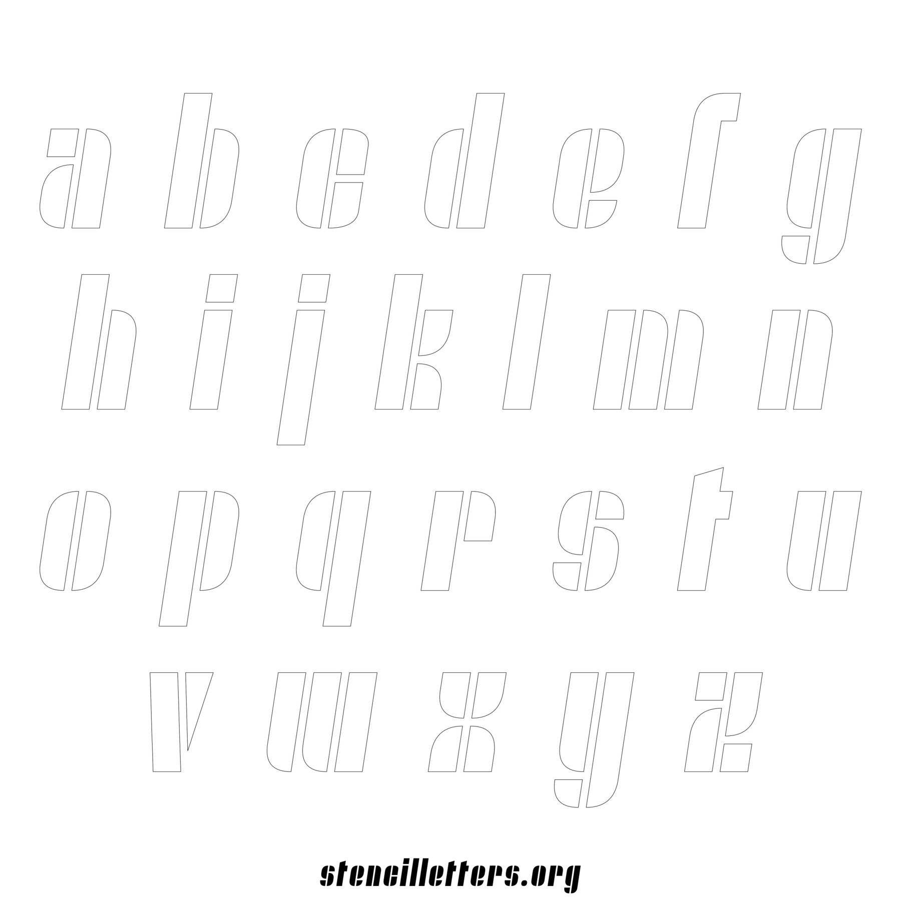 Stencil Design 257 Slanted. Print these free uppercase letter stencils and make your own DIY templates for your stenciling projects. Available in high resolution printable sizes: 4 Inch, 5 Inch, 6 Inch, 7 Inch, 8 Inch, 9 Inch and 10 Inch.