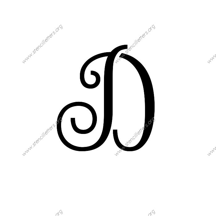 A cursive script with creative decorative looking letters. Add a graceful touch to your stencil project with these harmonious and eye pleasing alphabet stencils.