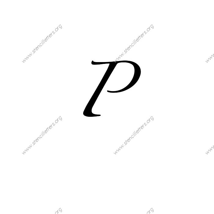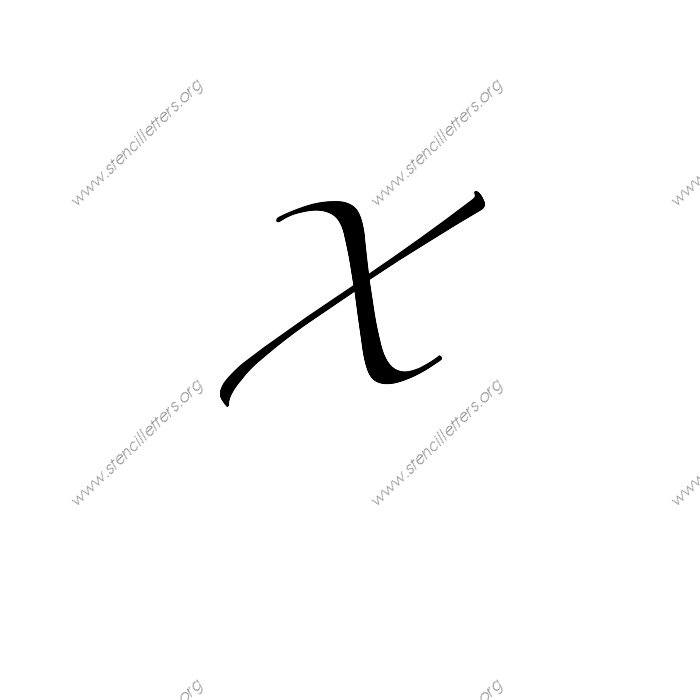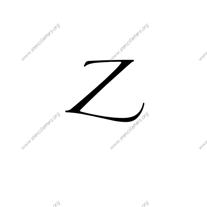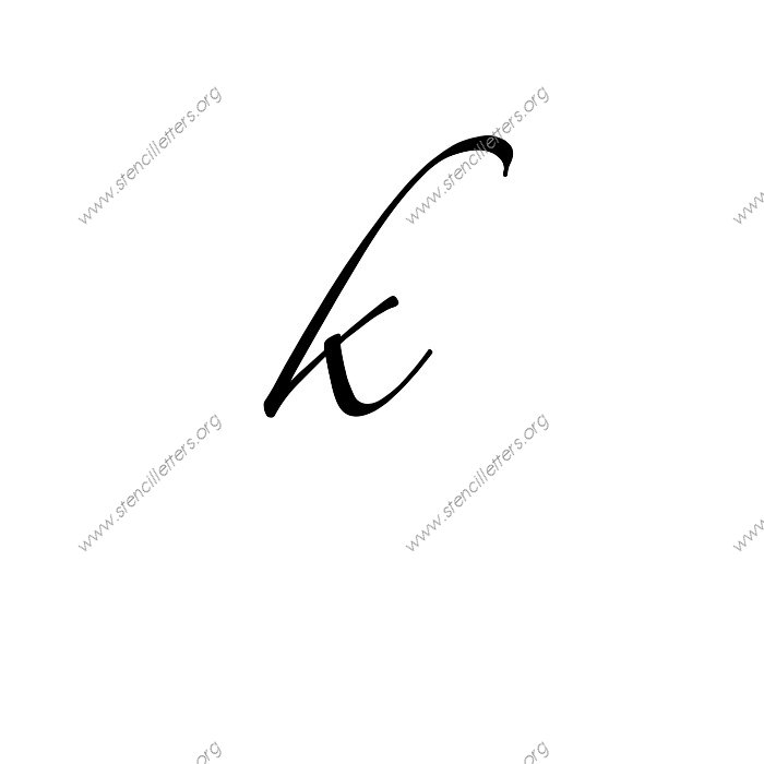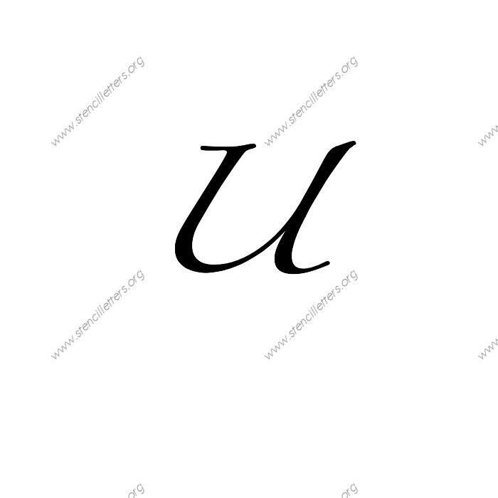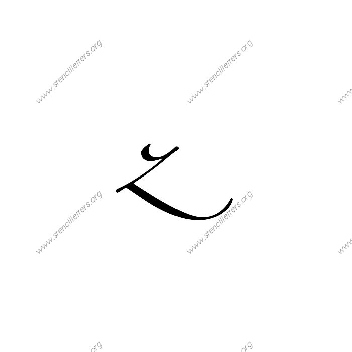 Script Cursive A to Z uppercase and lowercase letter stencils available in sizes from 1 inch up to 36 inches. This Script Cursive design is listed in the {Cursive stencils} selection.
