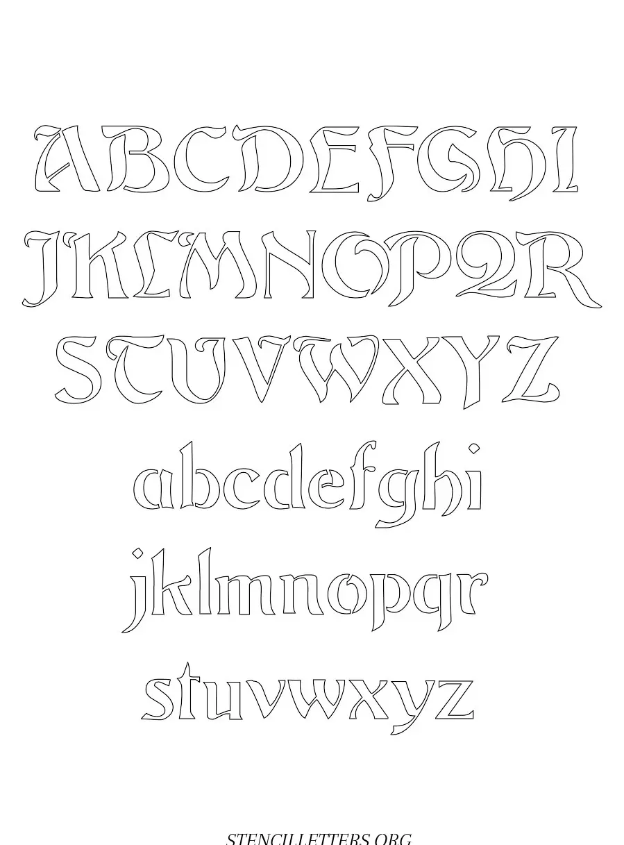 Deco Nouveau free printable letter stencils in uppercase and lowercase with outline cutout alphabet letters.