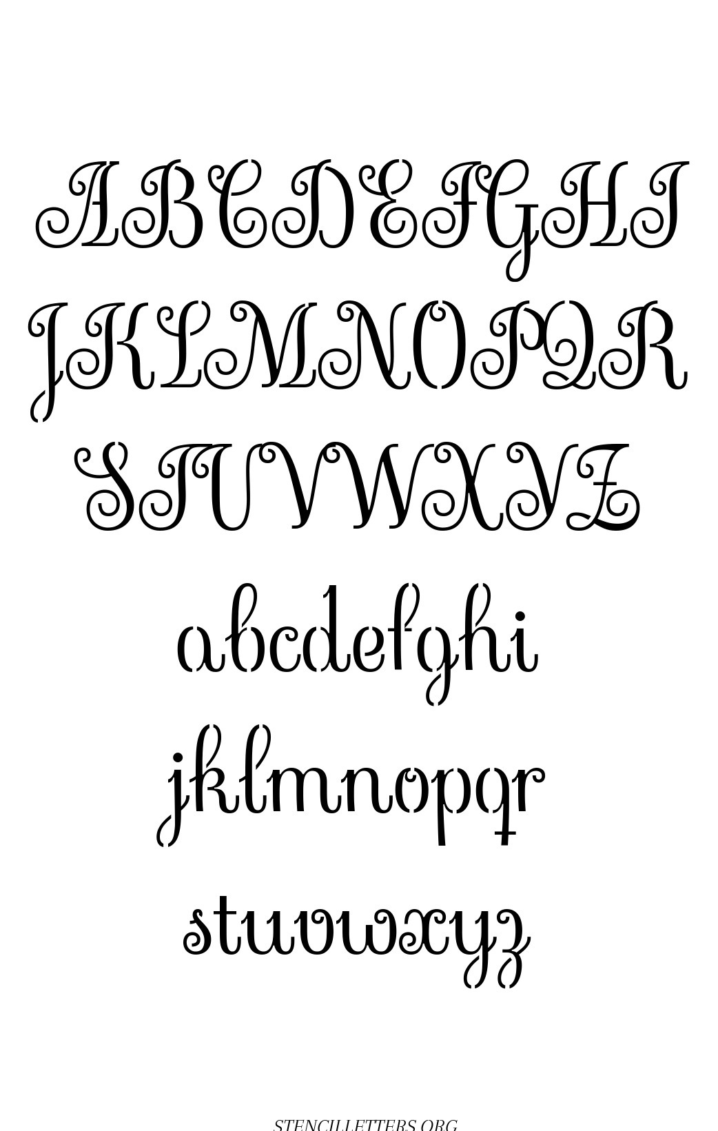 Exquisite Fine Cursive Capital A-Z, small a-z free stencil letter templates to print and cut out.